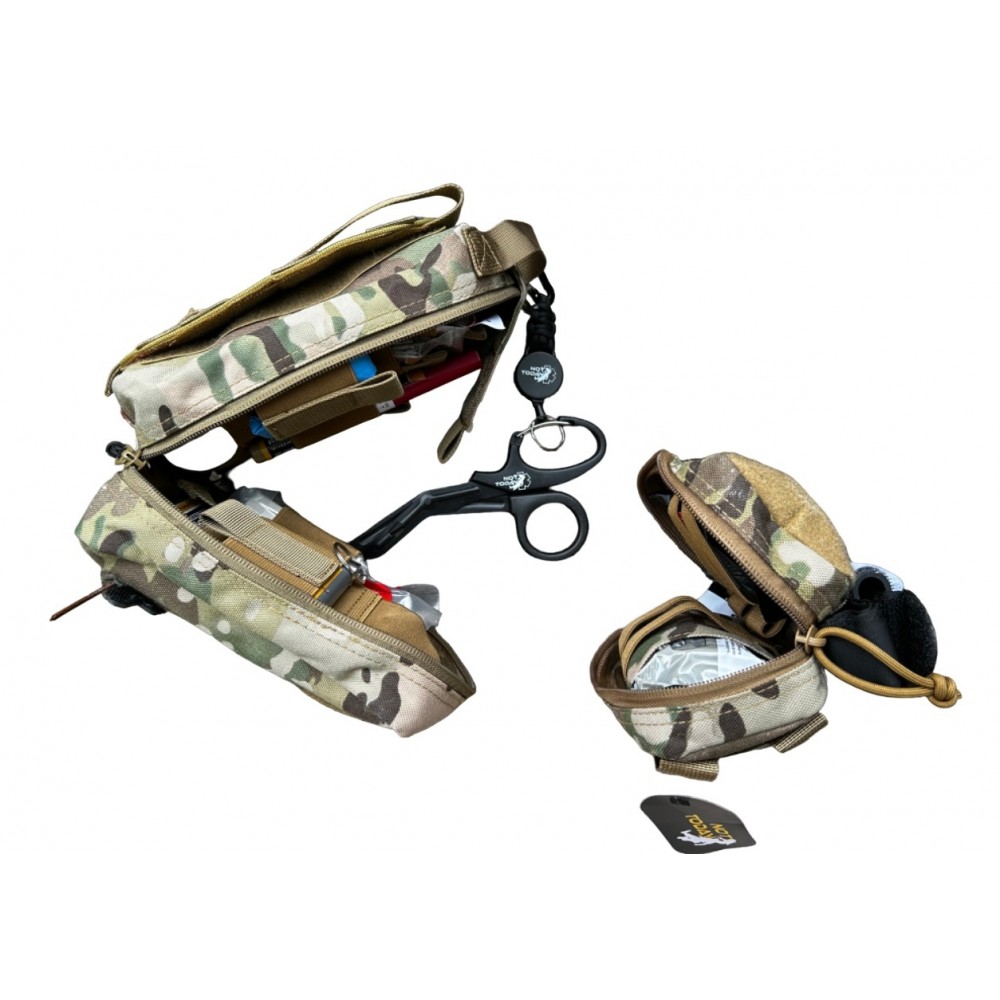 - Подсумок под первый эшелон (подарок) с целью уменьшить объем и профиль аптечки. Крепится как на молле,так и под ремень.