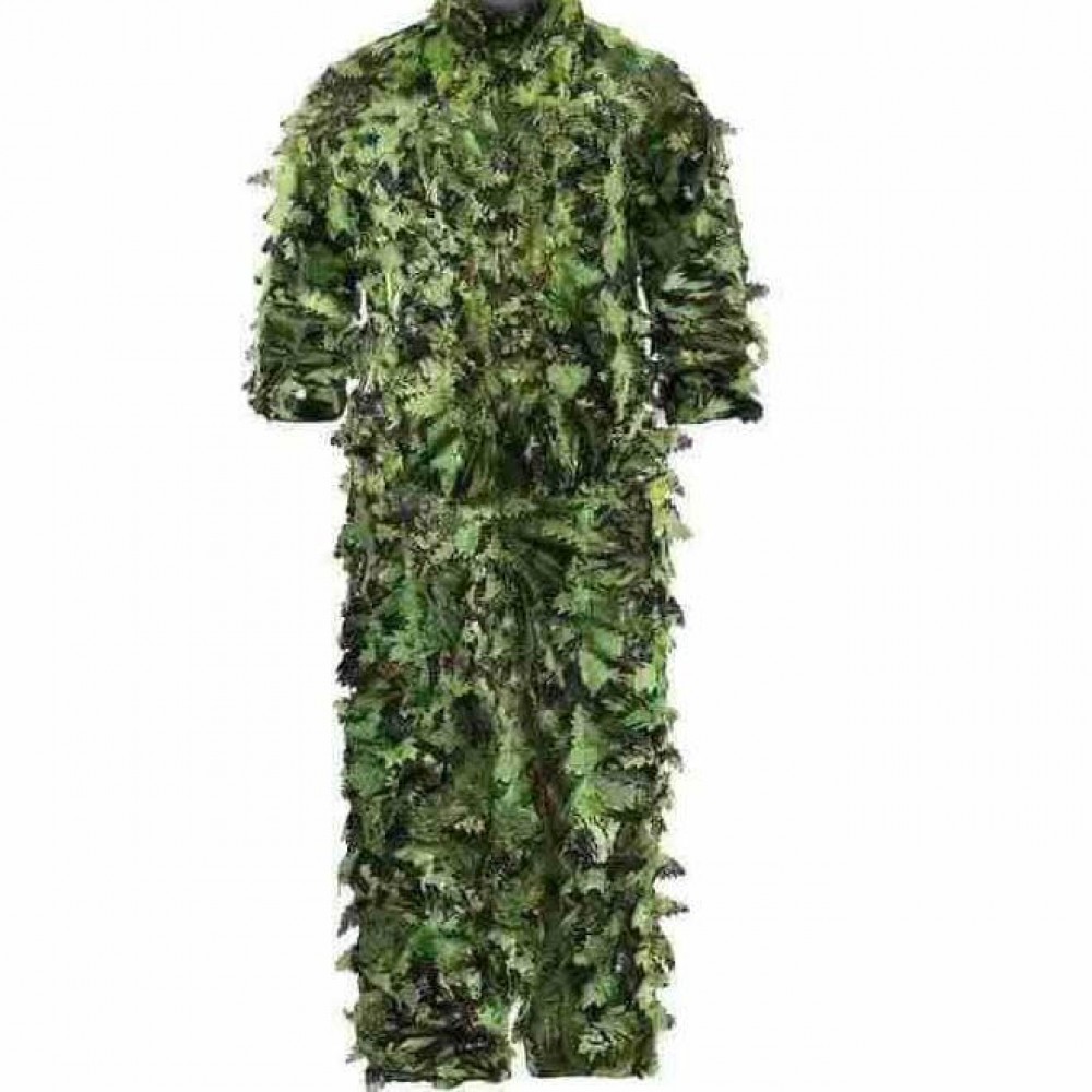 - Материал: Маскировочный костюм выполнен из прочного и дышащего полиэфирного волокна. Этот материал обеспечивает долговечность костюма и комфорт в любых погодных условиях.