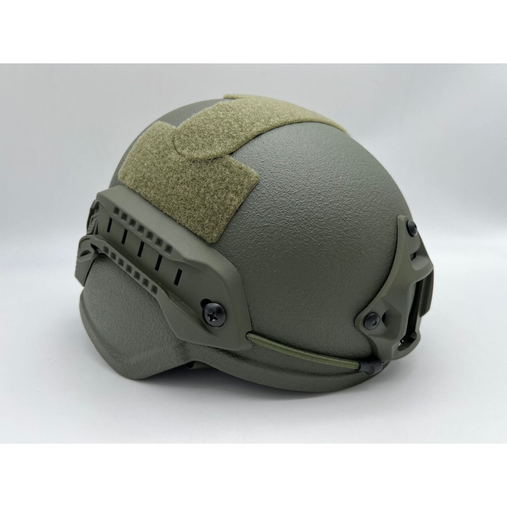 - Материал: Шлем изготовлен из композитного материала на основе арамидного волокна (кевлар), что обеспечивает высокую степень баллистической защиты.