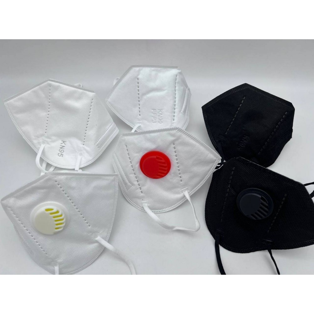 KN95 ЧЁРНЫЕ / BLACK С КЛАПАНОМ по 5 или 10 штук в упаковке, транспортная коробка 1.700 штук.